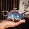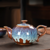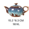 - Vibrant Colors: The teapot’s surface displays a rich gradient of colors, from deep blues to warm browns, showcasing the magical charm of the kiln-changed glaze.